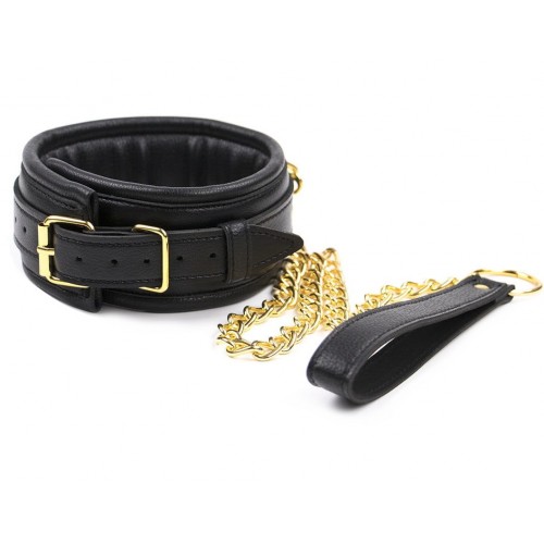 Черно-коричневый ошейник с поводком на золотой цепи