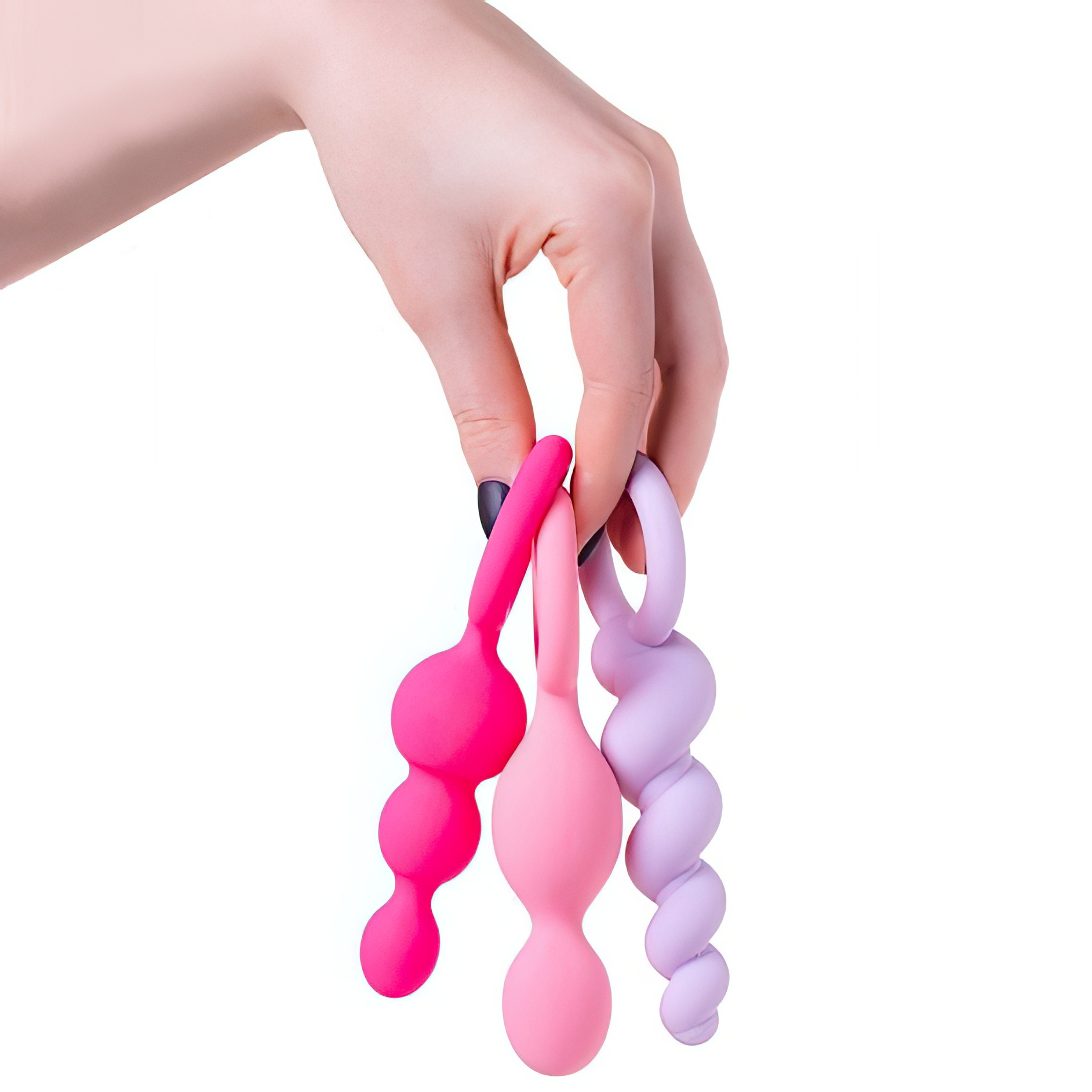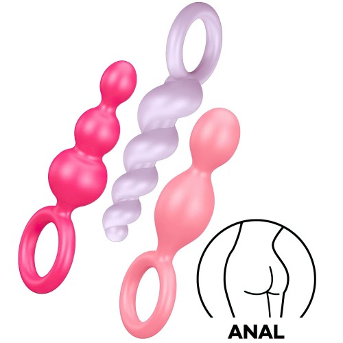 Набор разноцветных анальных стимуляторов Satisfyer Booty Call изготовлены из гипоаллергенного силикона.
