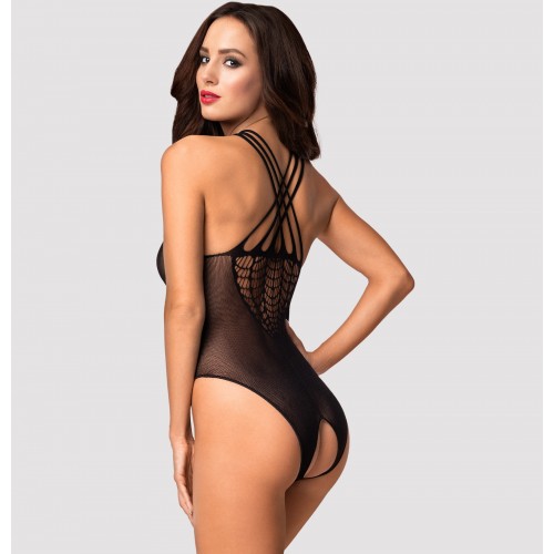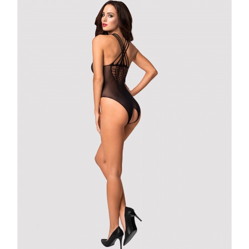 Тонкие бретельки, перекрещивающиеся на вырезе и спине, добавляют сексапильности и создают очень интригующий образ. Боди красиво прилегает к телу, подчеркивая достоинства фигуры. Открытая промежность — очень смелый и чувственный элемент, который позволит получить еще больше удовольствия.