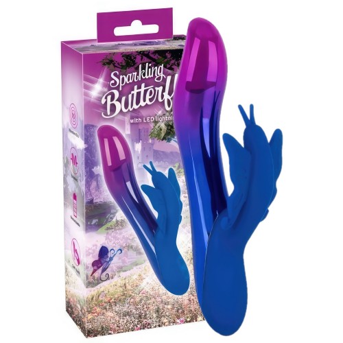 Перезаряжаемый вибратор с клиторальным стимулятором-бабочкой и подсветкой Sparkling Butterfly создан ярких и красивых моментов удовольствия!