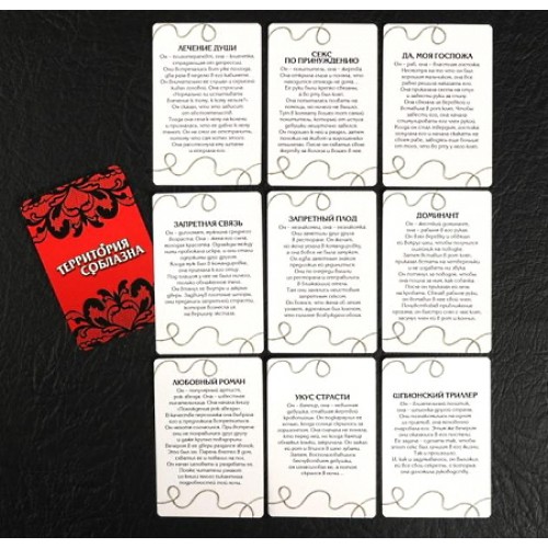 Внутри вас ждёт 10 карт с ролевыми играми. Внимательно их изучите и выберите ту, которую будете использовать сегодня. По желанию можно подготовить костюмы и реквизит, чтобы обеспечить полное погружение. Осталось только подарить друг другу незабываемые эмоции!