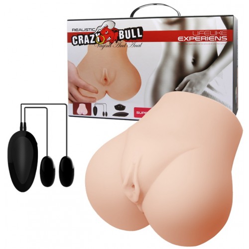 Мастурбатор-реалистик Crazy Bull с двумя отверстиями и двойным виброяйцом от компании Balie - кладезь удовольствия для мужчин, предпочитающих получать все и сразу!