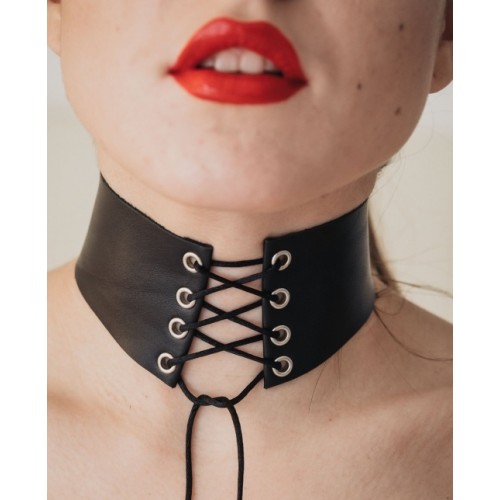 Эротический кожаный чокер со шнуровкой