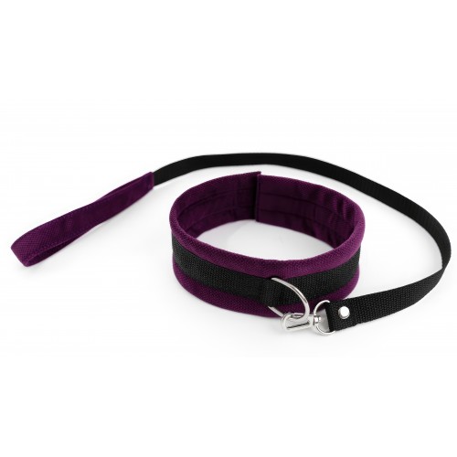 Широкий тканевый ошейник с поводком My rules фиолетово-черный