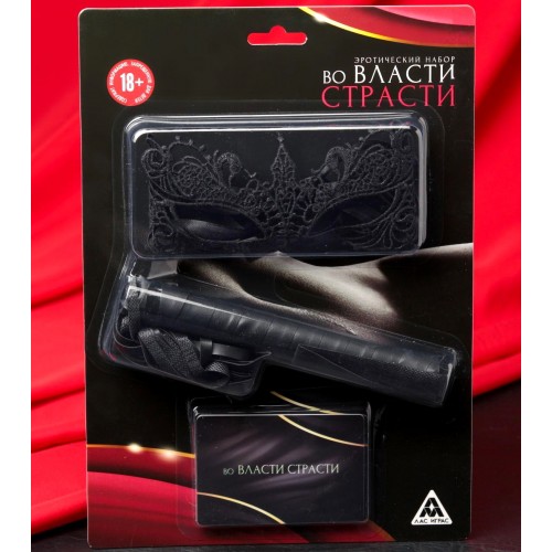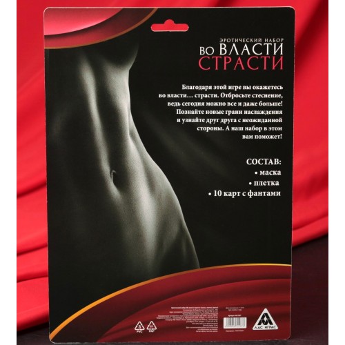 Эротический набор Во власти страсти: маска, плётка, фанты
