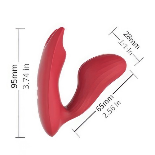Вибратор имеет два кончика и два мотора: вагинальный - диаметром 2,8 см - имеет округлую плавную форму, а второй - широкий и плоский, комфортно ложится на зону клитора.
