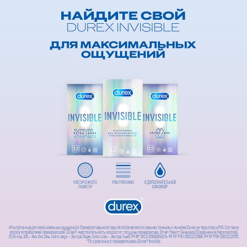 Поэтому Durex решили производить Invisible XXL – специально для тех, кто ищет ультратонкие презервативы увеличенного размера.
