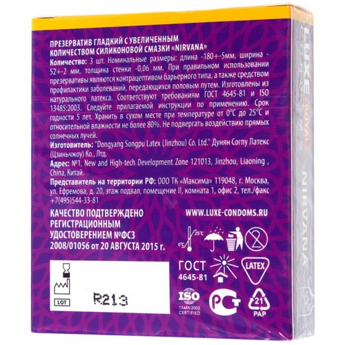 Презервативы с дополнительной смазкой Luxe Royal Nirvana 3 шт