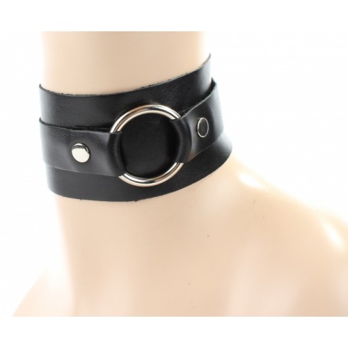 Чокер изготовлен из натуральной мягкой кожи черного цвета, плотно прилегающей к шее.