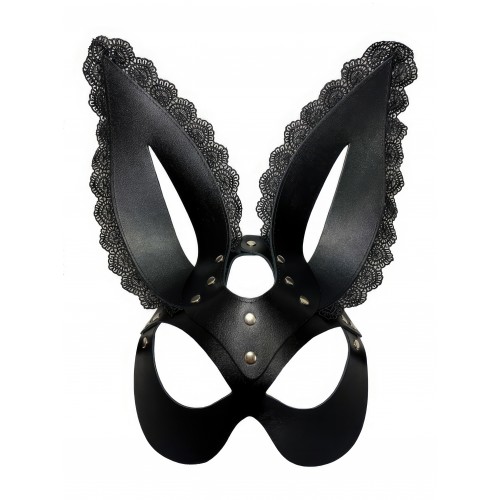 Маска зайца из натуральной черной кожи с кружевом