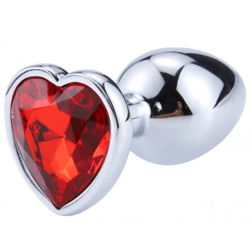 Серебряный плаг с кристаллом-сердцем красного цвета в основании.