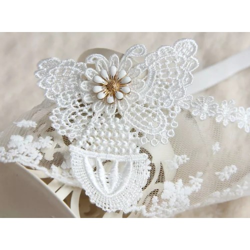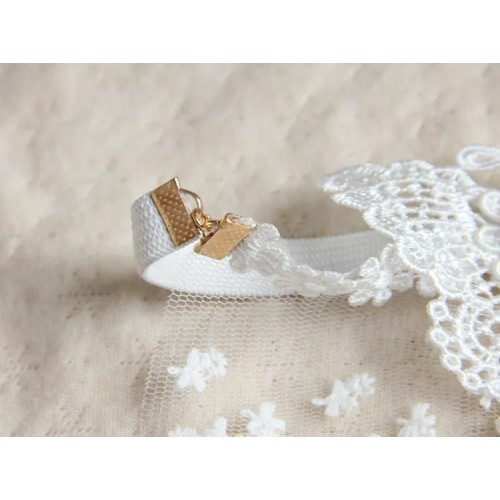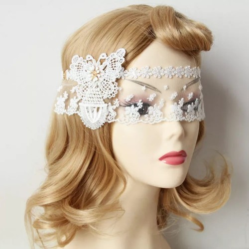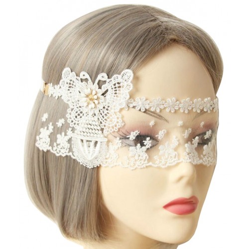 Маска изго­тов­лена из нежного ажур­ного кру­жева белого цвета. Надевается при помощи мягкой эластичной ленты.