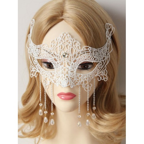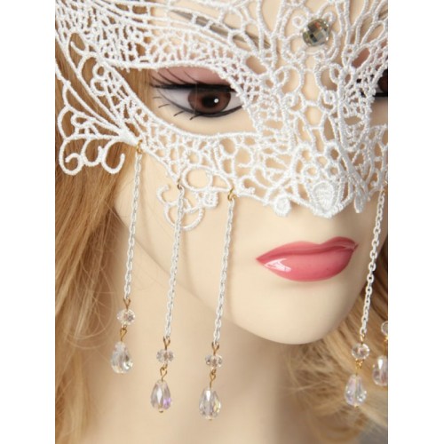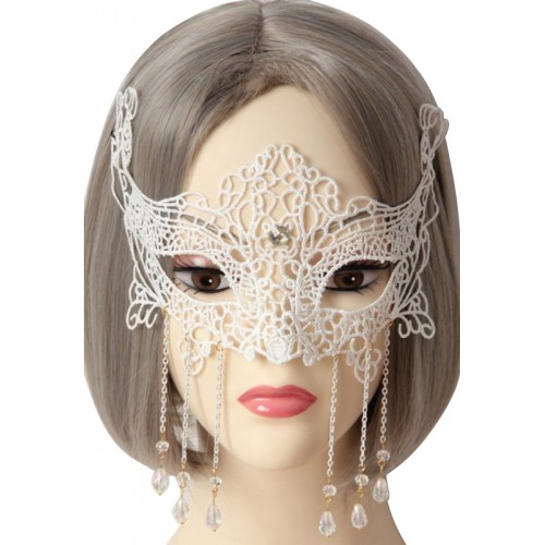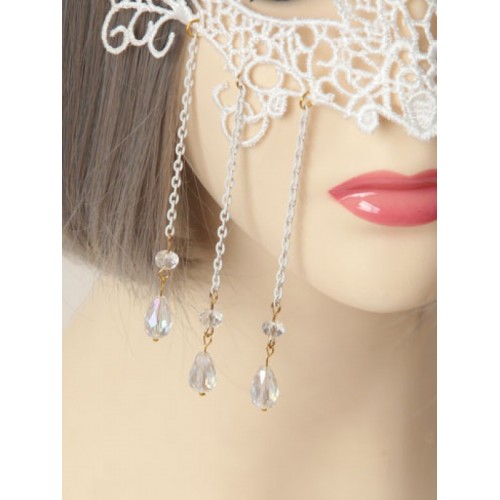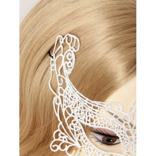 Маска изго­тов­лена из нежного ажур­ного кру­жева белого цвета. Надевается при помощи невидимок (идут в комплекте).