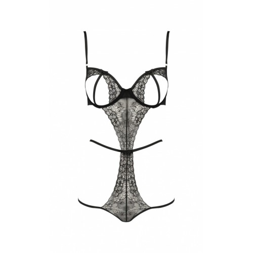 Соблазнительное боди Esmeralda черного цвета выполнено из эластичного кружева и стреп-лент.