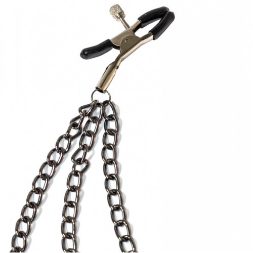 Цепи, которые прикреплены к зажимам, позволят расширить круг воплощаемых фантазий - Вы сможете прикрепить к ним дополнительные аксессуары, утяжелители... или просто тянуть за нее, чтобы еще больше обострить ощущения!