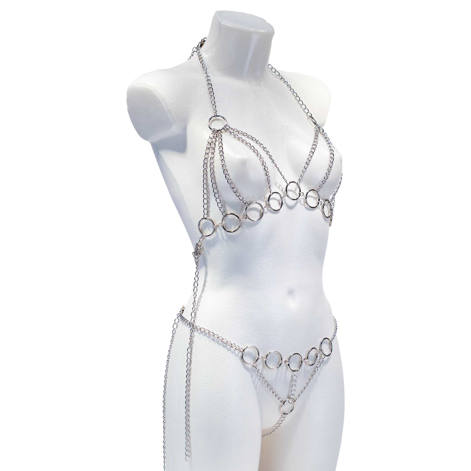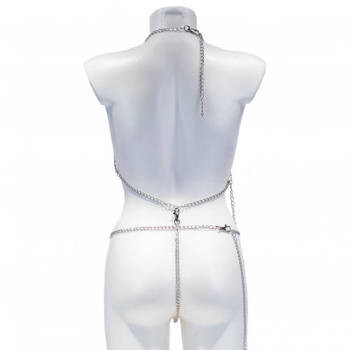Этот наряд ничего не скрывает, а только подчеркивает флер обнаженного тела... Металл холодит кожу, возбуждая желание сделать ночь еще горячее!