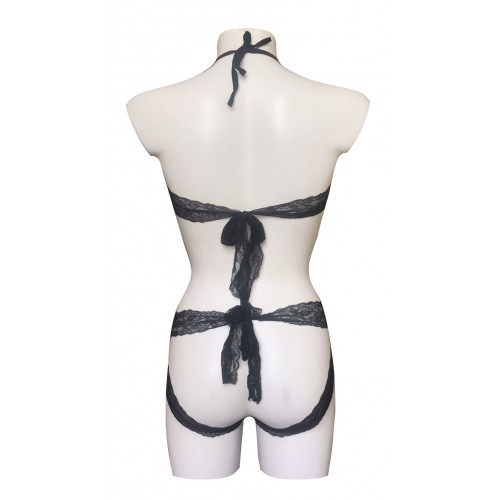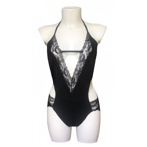 Обольстительное черное боди с кружевом S