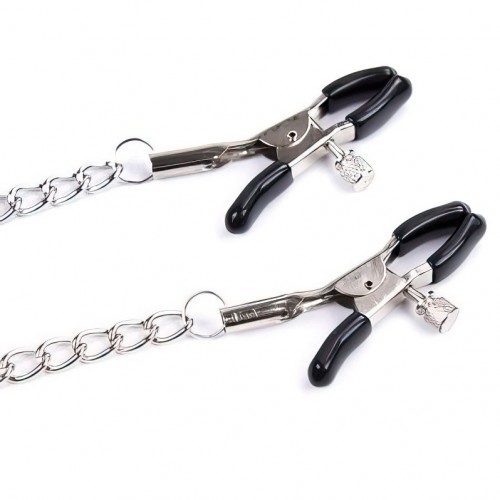 Метал­ли­че­ские зажимы подарят допол­ни­тель­ные ощуще­ния во время игр с под­чи­нившимся партнером.