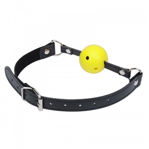 Кляп-шар имеет уни­вер­саль­ный размер, кото­рый удобно регу­ли­ру­ется при помощи пряжки, а спе­ци­аль­ные дырочки в шаре облег­чают дыха­ние и обес­пе­чи­вают пол­ный комфорт.
