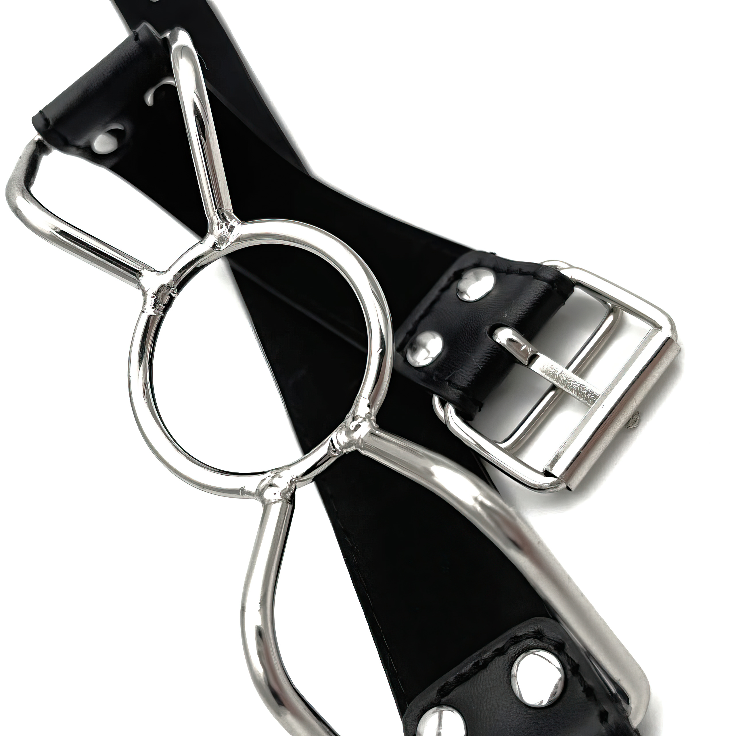 Такой аксессуар позволяет в полной мере насладиться играми в стиле БДСМ - кляп-расширитель со стальным кольцом имеет универсальный размер, который удобно регулируется при помощи пряжки.