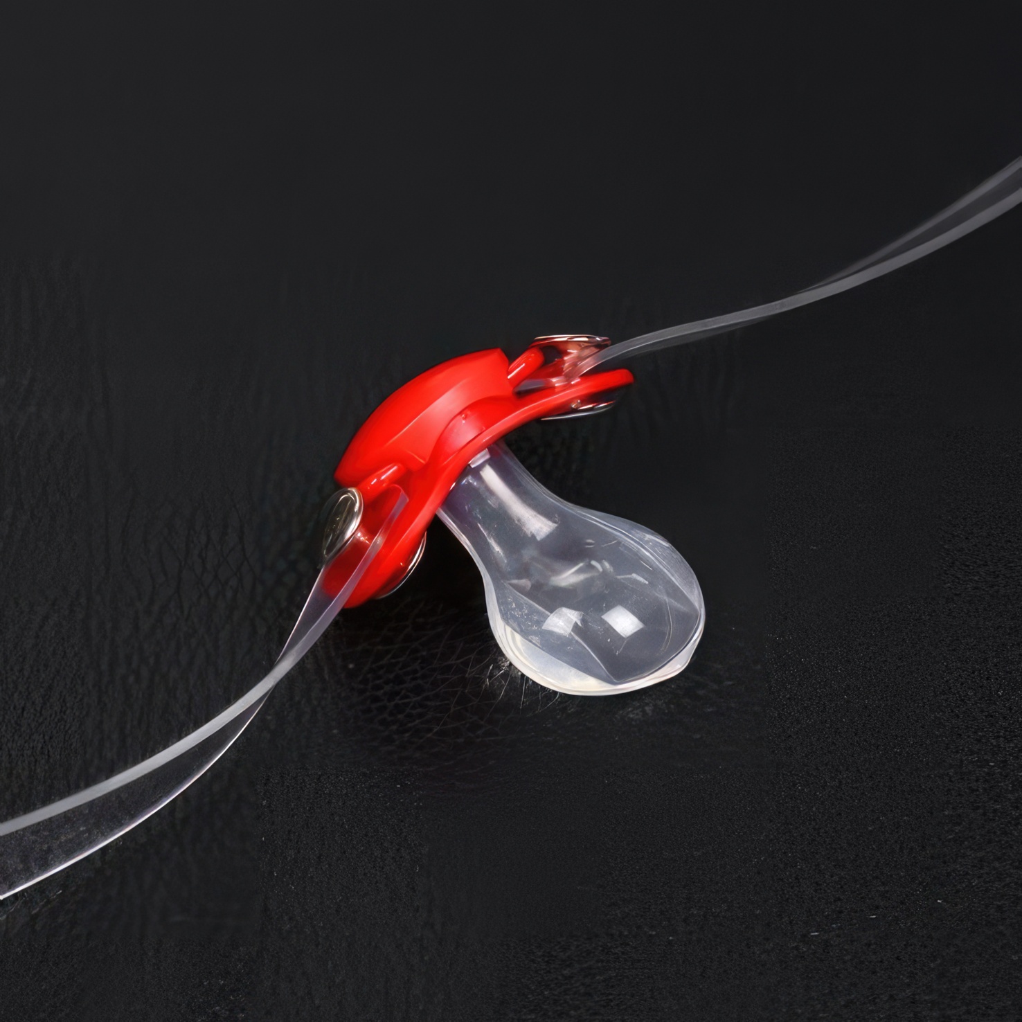 Оригинальный кляп в виде детской соски красного цвета придется по вкусу Вашей второй половинке!
