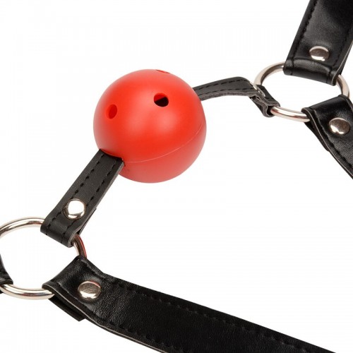 Кляп невозможно выплюнуть, он надежно фиксируется при помощи ремешка, который имеет уни­вер­саль­ный размер и удобно регу­ли­ру­ется пряжкой.