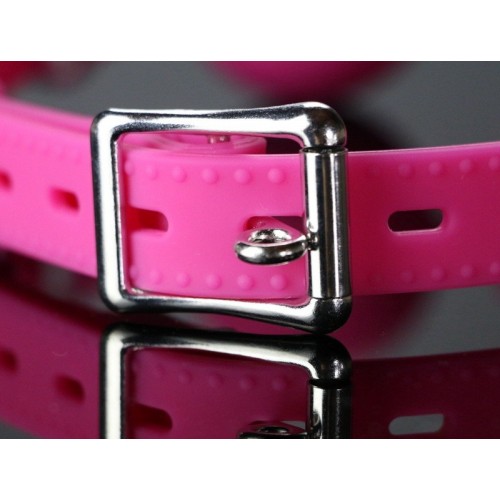 Кляп невозможно выплюнуть, он надежно фиксируется при помощи ремешка, который имеет уни­вер­саль­ный размер и удобно регу­ли­ру­ется пряжкой.