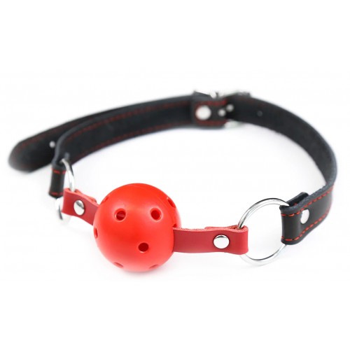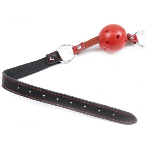 Красный кляп-шар на черно-красном ремне