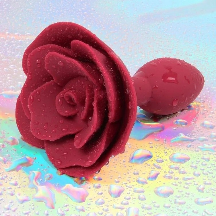 Силиконовая анальная пробка с розой - прекрасный инструмент для имитации эффекта двойного проникновения.