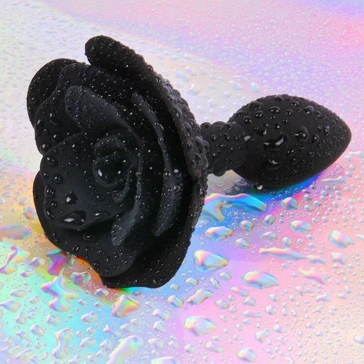Силиконовая анальная пробка с розой - прекрасный инструмент для имитации эффекта двойного проникновения.