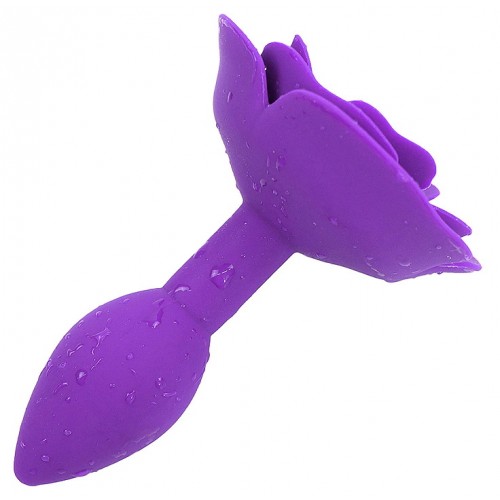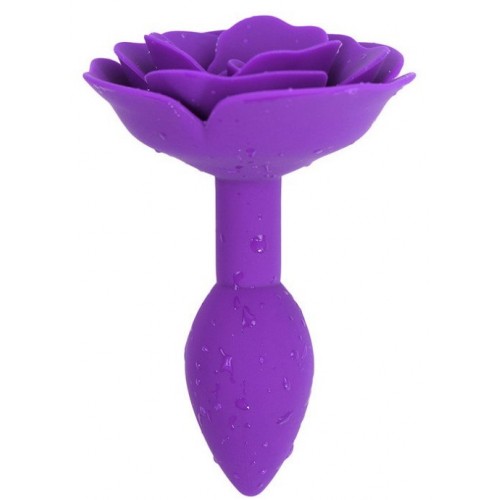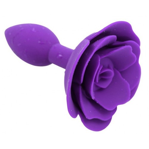 Фиолетовая силиконовая анальная пробка с розой S