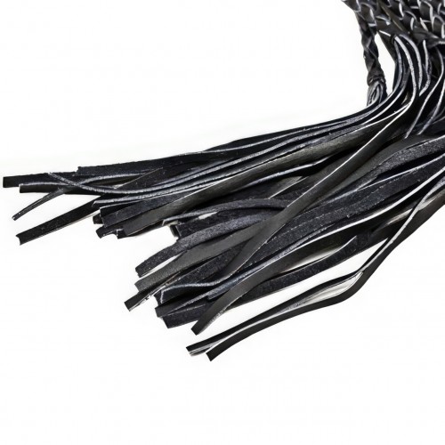Черный кожаный флоггер с плетеными хвостами 80 см