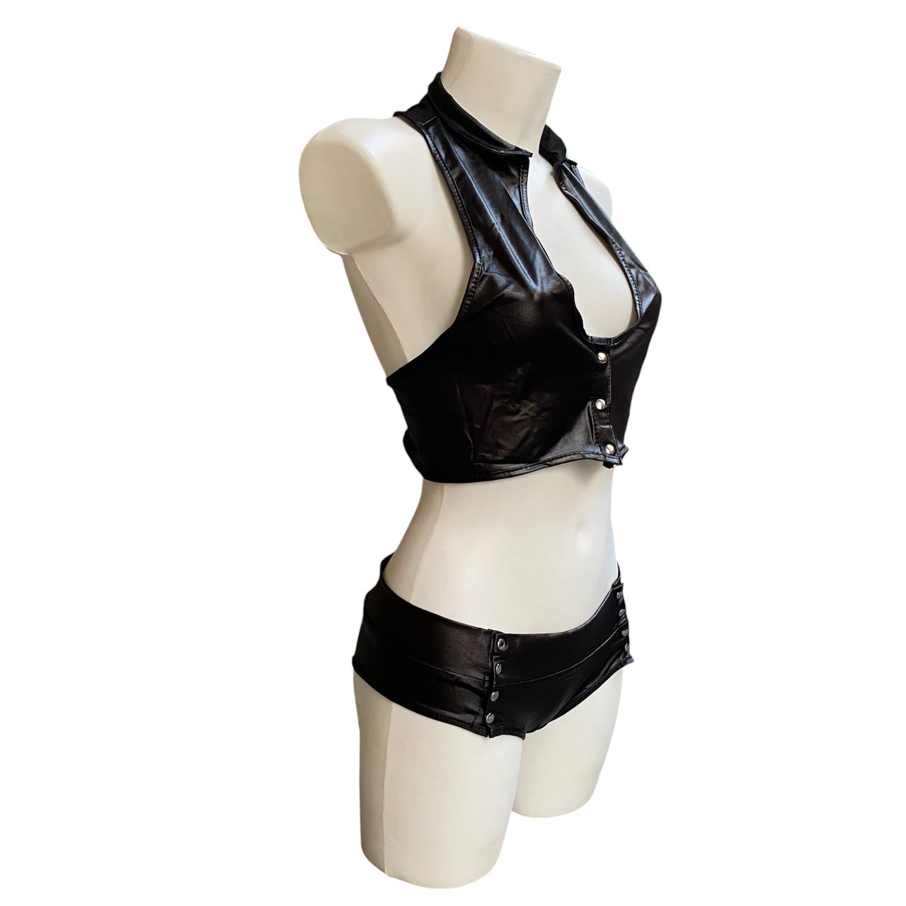 Сексуальный укороченный топ и короткие трусики-шортики в черном цвете станут отличным подарком для девушек, которые всегда желают выглядеть идеально!