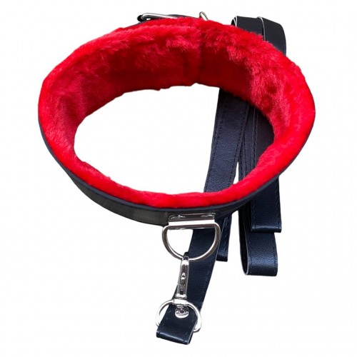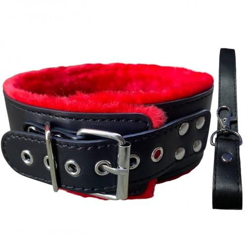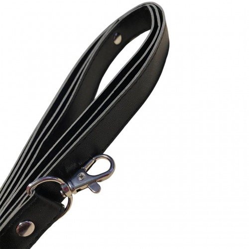 Металлическая фурнитура надежно фиксирует ремешок, а также позволяет отрегулировать размер. Поводок крепится к полукольцу на внешней стороне ошейника - это позволяет раздвинуть грани Ваших БДСМ игр!