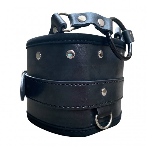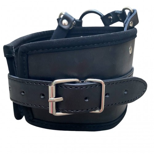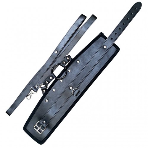 Металлическая фурнитура надежно фиксирует ремешок, а также позволяет отрегулировать размер. Поводок крепится к кольцу на внешней стороне ошейника - это позволяет раздвинуть грани Ваших БДСМ игр!