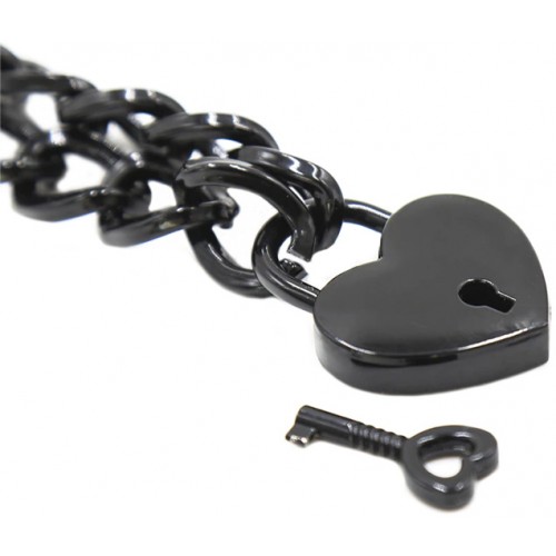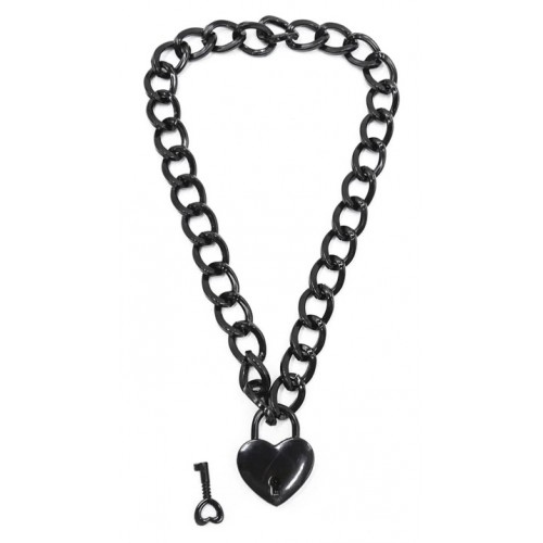 Аксессуар выполнен из металла и имеет вид классической цепи, но замочек-сердце добавляет ему особой дерзости.