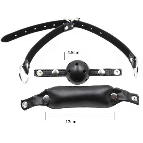 Размеры: ремешок удобно регулируется по длине от 26 до 45 см., кляп-шар диаметр 4,5 см., кляп-трензель длина 12 см.