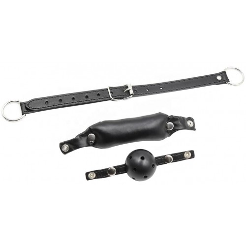 Ремешок кляпа имеет уни­вер­саль­ный размер, кото­рый удобно регу­ли­ру­ется при помощи пряжки. Такой аксессуар имеет две сменные насадки, которые представляют собой кляп-шар и кляп-трензель, и крепятся заклепками к ремню.
