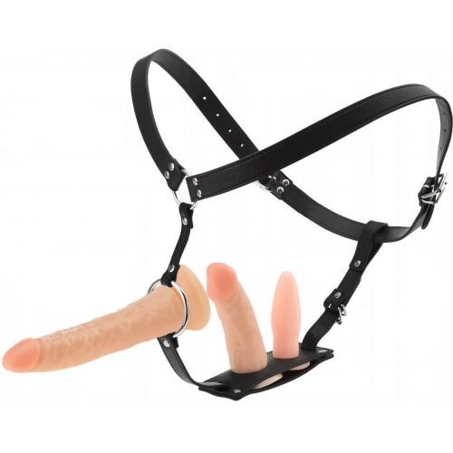 Не думайте, что Вы получите лишь моральное удовлетворение от полового акта, ведь ремень оснащен съемным страпоном, анальной и вагинальной втулками!