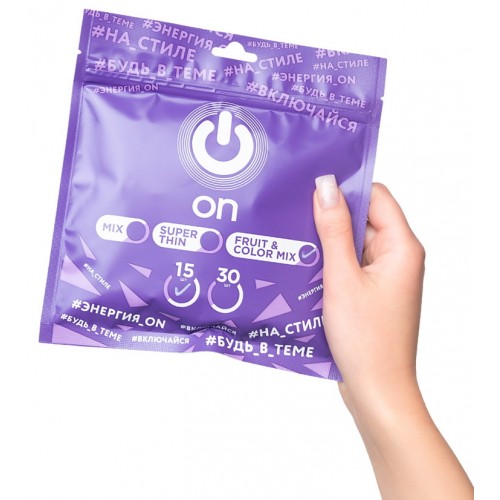 Разноцветные презервативы ON Fruit Colour Mix с фруктовыми ароматами 15 шт