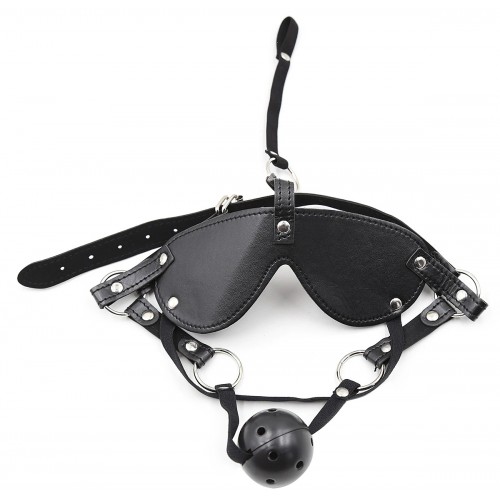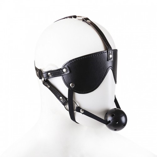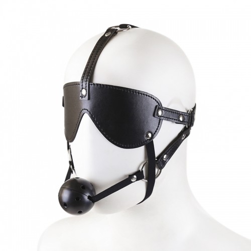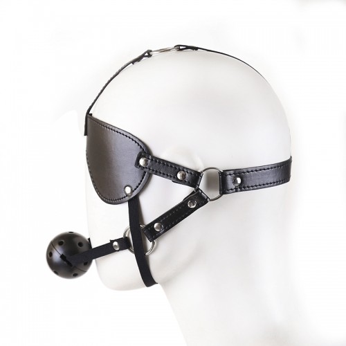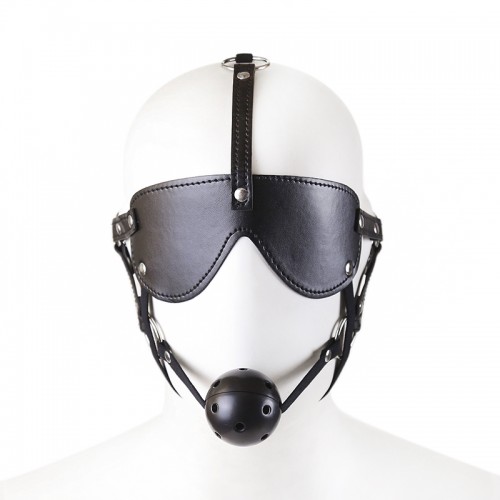 БДСМ маска на ремнях с дышащим кляпом