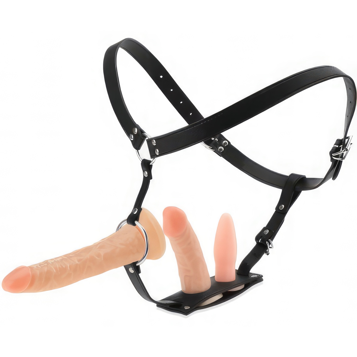 Вы сможете вставить насадки в O-ring кольцо и в кожаную подкладку - так Вы получите универсальный страпон с вагинальными втулками.