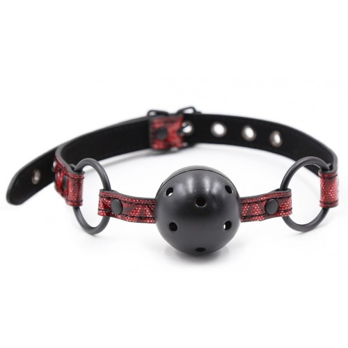 Кляп-шар имеет уни­вер­саль­ный размер, кото­рый удобно регу­ли­ру­ется при помощи пряжки, а спе­ци­аль­ные дырочки в шаре облег­чают дыха­ние и обес­пе­чи­вают пол­ный комфорт.