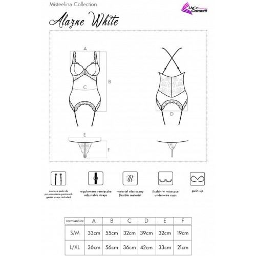 Нежный белый корсет с кружевными трусиками Alazne – это изящно выполненное эротическое белье, недвусмысленно намекающее на стремительное развитие интимной игры.