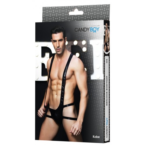 Черное эротическое боди Wetlook Candy Boy Kobe, хорошо подчеркнет все прелести фигуры.