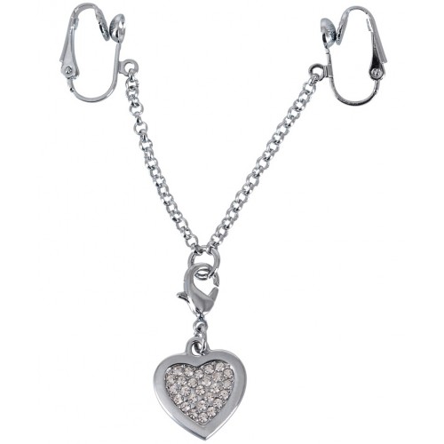 Металлические зажимы на половые губы с подвеской Сердце с кристаллами