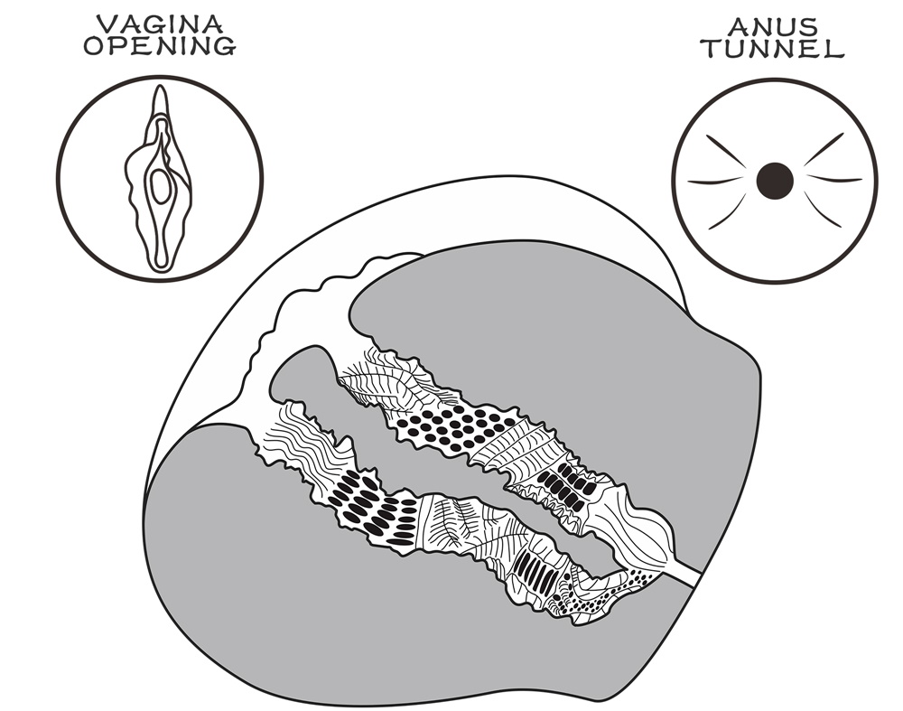 Мастурбатор имеет целых два отверстия - анальное и вагинальное. Внутри отверстий вас ждет потрясающий рельеф в виде различных выпуклостей, шариков и гребешков, предназначенных для более интенсивной стимуляции члена во время использования.