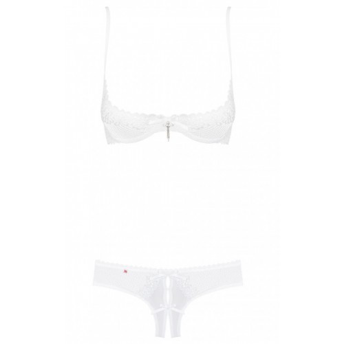 Белый кружевной комплект с обнаженной грудью и открытыми трусиками Alabastra S/M