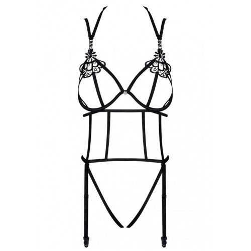 Откровенное боди с открытым доступом и пажами для чулок Badossa S/M