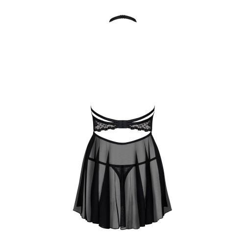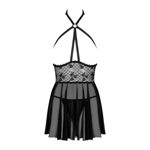 Черный бэби-долл изготовлен из красивой сетки с цветочным акцентом под грудью, открытые чашки и черные стрепы оригинально подчеркнут открытую грудь, застежка в несколько шагов даст возможность регулировки, а классические стринги дополнят образ, привлекая к телу еще больше внимания.